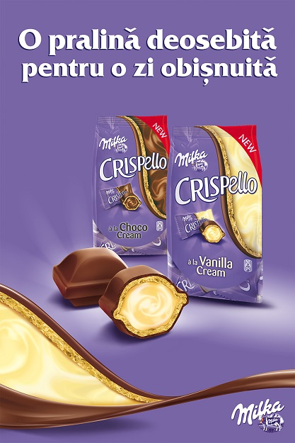 Plecând de la aceste cerinţe, identificate în cadrul studiilor de piaţă, Kraft Foods România, lansează Crispello, o pralină cu o textură multiplă în 3 straturi: cremă de vanilie sau ciocolată, umplutură cremoasă, înveliş crocant, totul acoperit cu cea mai fină ciocolată Milka.