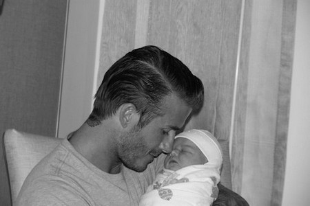 Victoria Beckham a postat pe contul ei de Facebook două fotografii cu noua venită în familia Beckham: una cu David care-şi ţine nasul lipit de cel al micuţei Harper şi una cu fericita mămică în braţe cu fetiţa mult dorită.