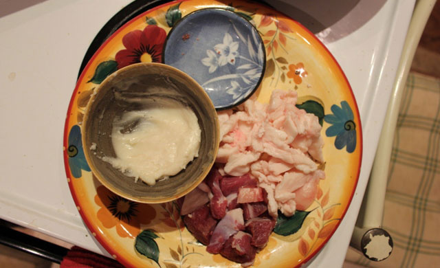 Îşi pune pe farfurie bucăţi de carne de miel şi grăsime. El spune că preferă carnea de miel pe care o cumpără de la ferme sau cea de vită. În schimb evită carnea de porc pe motiv că sunt crescuţi cu hormoni şi hrăniţi cu cereale care dezvoltă bacterii.