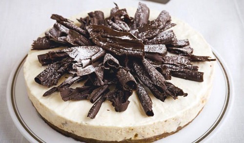 Tortul se lasă la frigider câteva ore, după care se ornează cu ciocolată şi zahăr praf.