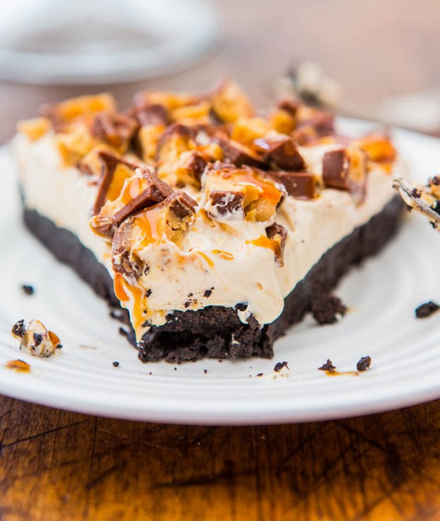 4. Tort fără foc cu mascarpone, unt de arahide şi Snickers