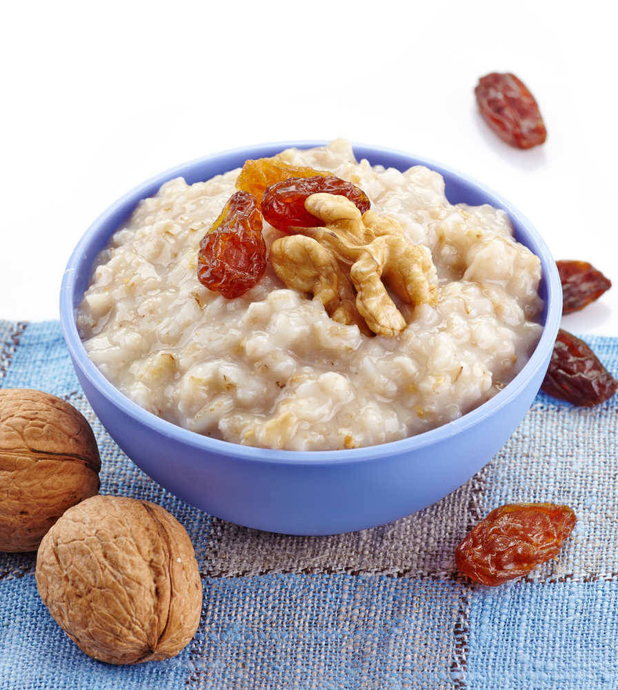 Pune la fiert 2 linguri cu fulgi de ovăz, 1 lingură fulgi de cocos, puţină sare de mare şi apă cât să fie de un deget peste ingrediente. Se lasă la fiert la foc mic până când ovăzul absorbe apa, aproximativ 2-3 minute. Pentru a-l îndulci foloseşte banana sau câteva stafide, adăugând apoi câteva nuci crude.
