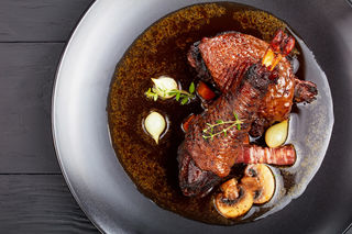 Confit de Canard este o rețetă sofisticată, dar cu origini rustice, specifică regiunii Gasconia. Carnea de rață este gătită lent în propria grăsime până devine extrem de fragedă, apoi este rumenită înainte de servire.