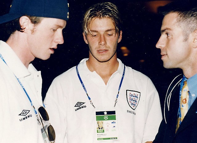 Ne întoarcem însă în vara anului ’98, la un David Beckham foarte tânăr şi la istoria celor două fotografii surprinse în zona mixtă după meciul nostru cu englezii. Aici, între cele două vestiare, practic nu aveai cum să te strecori, agenţii de securitate împânzind zona şi anulând politicos, dar foarte ferm orice tentativă de apropiere a suporterilor şi mai ales a jurnaliştilor. Din ţară eram oricum acreditat la eveniment, dar acolo nu prea conta asta şi m-am folosit de o legitimaţie “L’Equipe”, faimoasa publicaţie a gazdelor noastre de atunci. Fluturând acest act, grăbit şi cu un aer preocupat, îl strigam şi îi făceam semn lui David Beckham, acesta oricum privea în gol dar lăsa impresia că priveşte spre mine, spre cineva cunoscut, pentru o fracţiune de secundă, agentul de pază a urmărit mişcarea şi când era focusat pe David eu m-am strecurat şi am ajuns în imediată apropiere a starului englez, unde alături de coechipierul său Steve McManaman, amândoi foarte trişti şi afectaţi de rezultatul meciului, mai era un agent de pază care pentru câteva secunde nu şi-a dat seama ce se întâmplă, timp sufficient să “trag” 5-6 cadre pe film Fuji de 400 ASA, cadre pe care şi azi le consider ca un trofeu, David Beckham foarte tânăr!