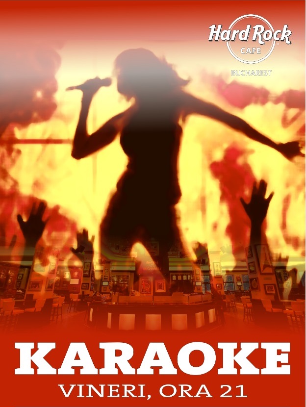 Vineri seara, Hard Rock Cafe iti da sansa de a te transforma din fan in superstar! Urca pe scena si arata-le prietenilor tai ca ai stofa de vedeta interpretand o piesa dintr-un impresionant repertoriu ce cuprinde trupe si artisti ca: The Beatles, AC/DC, Aerosmith, U2, Queen, Bon Jovi, Michael Jackson, Robbie Williams si multi altii. Vei pleca nu doar cu o multime de fani, ci si cu premii! Intrarea este libera. Rezervari la numarul 021 2066261.