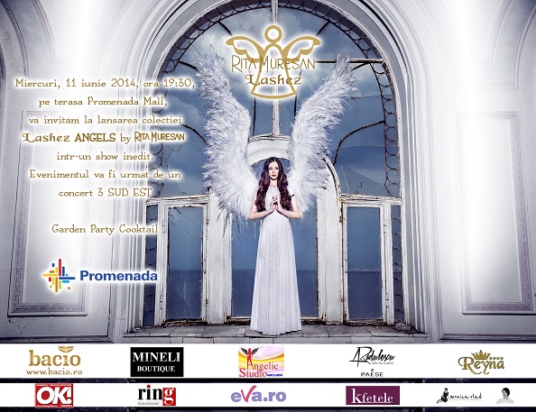 Pe 11 iunie, ora 19.30, pe terasa de pe acoperisul Promenada Mall va avea loc lansarea colectiei “LASHEZ ANGELS by RITA MURESAN”, o colectie cu un mesaj special, editie limitata, cu atentie pe detaliu si lucru manual, ce se va comercializa in lantul de magazine Lashez. Colectia "LASHEZ ANGELS" s-a nascut din dorinta de a transmite un mesaj spiritual cu ajutorul culorilor si a hainelor. "Angel" inseamna "mesager" sau "cel trimis". Imaginea “LASHEZ ANGELS” este nimeni alta decat Gloria Muresan, fiica cea mica a creatoarei de moda.