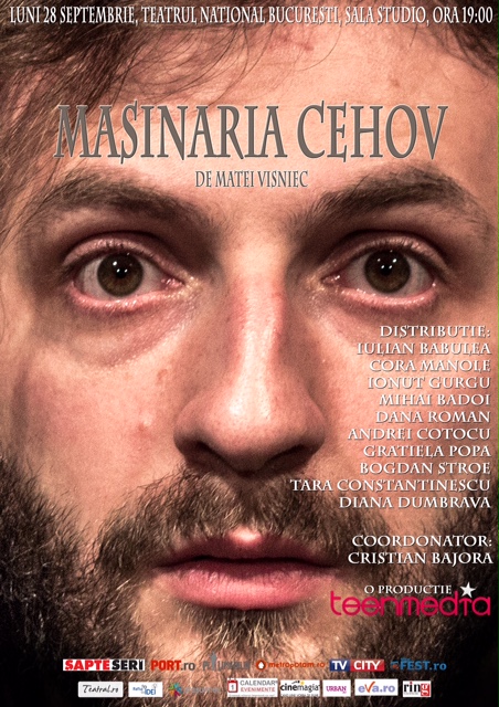 Curioși sau iubitori de teatru, sunteți așteptați - luni, 28 septembrie, de la ora 19:00, la Sala Studio a Teatrului Național București, pentru a viziona două spectacole realizate și jucate cu suflet: GUMĂ DE MESTECAT și MAȘINĂRIA CEHOV. Biletele se pot achiziționa de la sediul Teatrului În Culise (Calea Călărașilor nr. 55 – cu rezervare la 0735 026 762) sau online de pe www.bilete.ro. Pentru mai multe detalii despre spectacole vizitați www.teenmedia.ro.