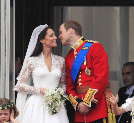 La celebrul balcon al Palatului, pe 29 aprilie, sub uralele a mii de supuşi, Prinţul William şi proaspăta sa soţie, Catherine, Ducesă de Cambridge, se sărută la ora 15:27 (ora României), un sărut care a durat 0,76 de secunde. După atingerea buzelor, Kate chicoteşte, iar William zâmbeşte larg.
