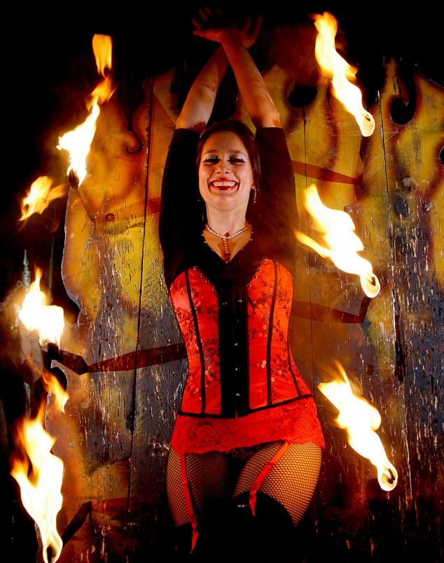 Ea lucrează acum pentru Circul Ororilor din Londra, acolo unde o zi normală de lucru înseamnă să stea nemișcată în timp ce colegul său aruncă spre ea cuțitele care se înfig la câțiva milimetri de fața și de corpul său. Și pentru ca totul să fie mai palpitant, lamele cuțitelor sunt cuprinse de flăcări în timp ce zboară spre ea.