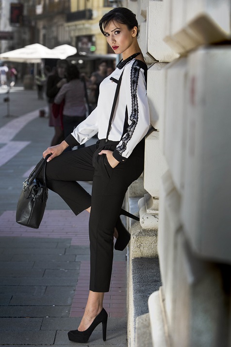 Astfel de tinute chic si trendy inspirate de moda a la Paris a purtat Alexandra in prima ei sedinta foto pentru La Femme in cadre reprezentative pentru atmosfera Micului Paris. Fotografiile au fost realizate de Vali Caloiu, hairstylingul a fost asigurat de Ana Bucur (hairstylist Butterfly Beauty Center), nailstylingul de Mari Ştefanescu – Cherie Nail Styling (servicii disponibile şi la Butterfly Beauty Center), iar pantofii au fost furnizati de Carmine Shoes (