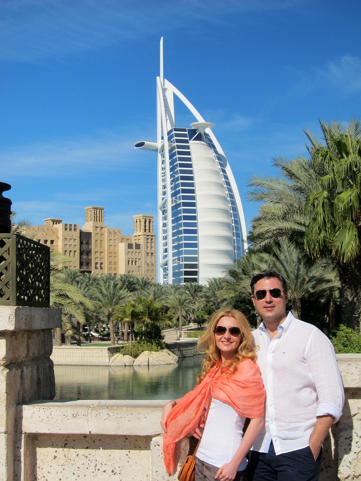În Emiratele Arabe Unite, cei doi soţi au petrecut Revelionul şi primele două săptămâni din noul an. “Am fost pentru prima dată în Dubai şi evident că am fost plăcut impresionaţi de cât de rapid s-a dezvoltat acest oraş. Ne-am plimbat prin tot oaşul, prin mall-uri, prin bazarurile pline de mirodenii şi bijuterii, apoi am făcut plajă lângă celebrul hotel Burj al Arab”