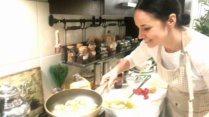 "Zâna" a gătit în weekend pentru familia ei. Adepta unui stil de viaţă sănătos, ea şi-a răsfăţat apropiaţii cu somon la cuptor, salată cu rucola şi roşii cherry, dar şi cu creveţi la tigaie.