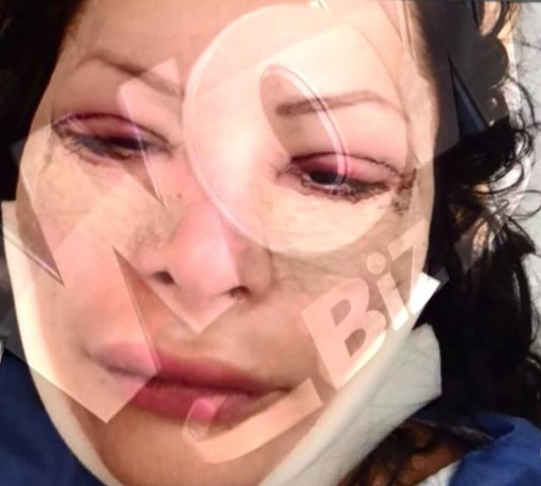 Fotografiile făcute de Brigitte după operație au fost publicate de site-ul wowbiz.ro.