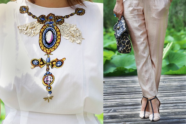 Ținuta a fost integrată perfect într-un cadru relaxant, bloggerița fiind fotografiată lângă un lac cu nuferi superbi.