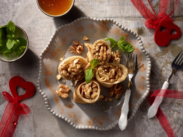 Pentru umplutură, prăjiţi nucile în tigaie, fără ulei. Le lăsaţi la răcit, apoi amestecaţi cu mierea. Serviţi clătitele îndoite, răsucite, suprapuse sau sub diferite forme… cum şi cât va permite imaginaţia. Spor la treaba şi poftă bună!", a scris Florin Dumitrescu. Foto: Mediafax