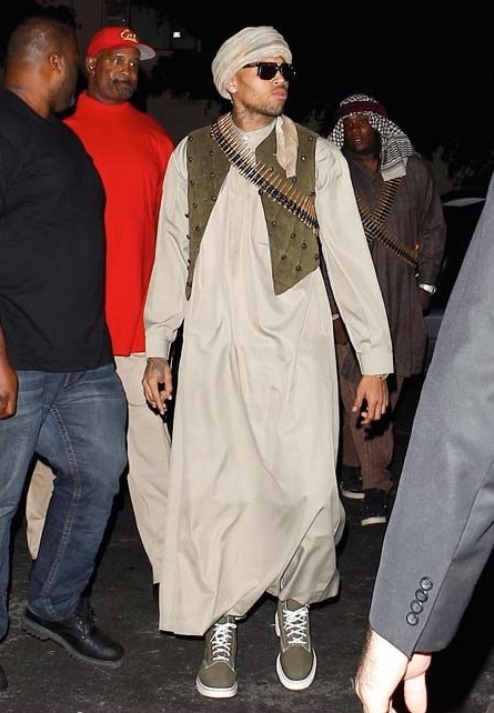 Fostul iubit al Rihannei are o reputație de "băiat rău" în showbiz-ul american. Artistul și-a respectat statutul și a apărut la o petrecere de Halloween îmbrăcat ca un taliban.