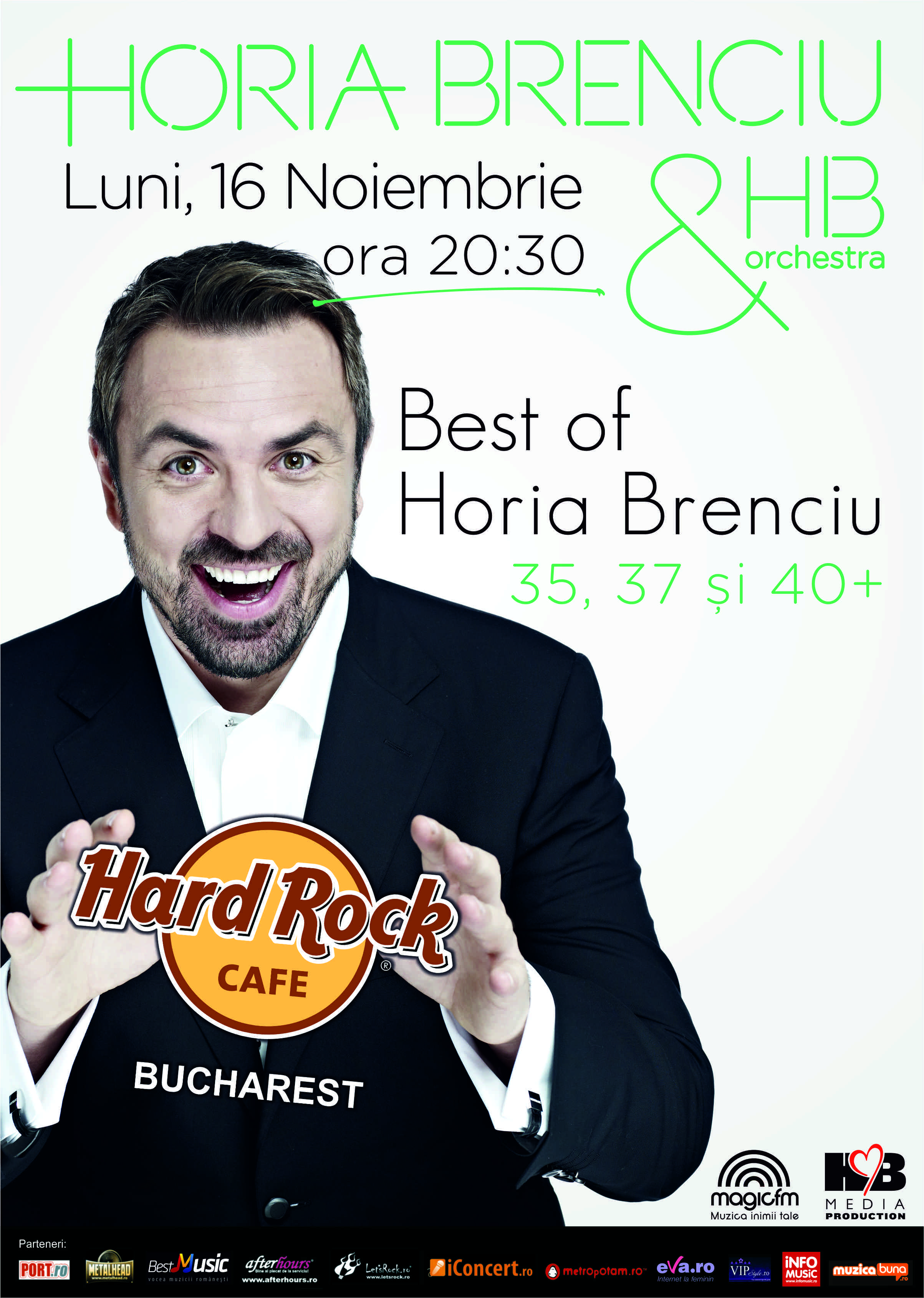 HORIA BRENCIU vine să îţi cânte şi să te încânte cu un concert “Best of”, pe 16 noiembrie, la Hard Rock Cafe! Nu pierde un eveniment de senzaţie cu un one-man show desăvârşit! Alături de HB ORCHESTRA, cea mai complexă orchestră din showbizul românesc, carismaticul artist va pune în scenă un spectacol inedit, cu cele mai îndrăgite piese din repertoriul propriu, precum „Fac ce-mi spune inima” şi „Hello”, dar şi cu hituri internaţionale, ce îţi vor aprinde pofta de dans.