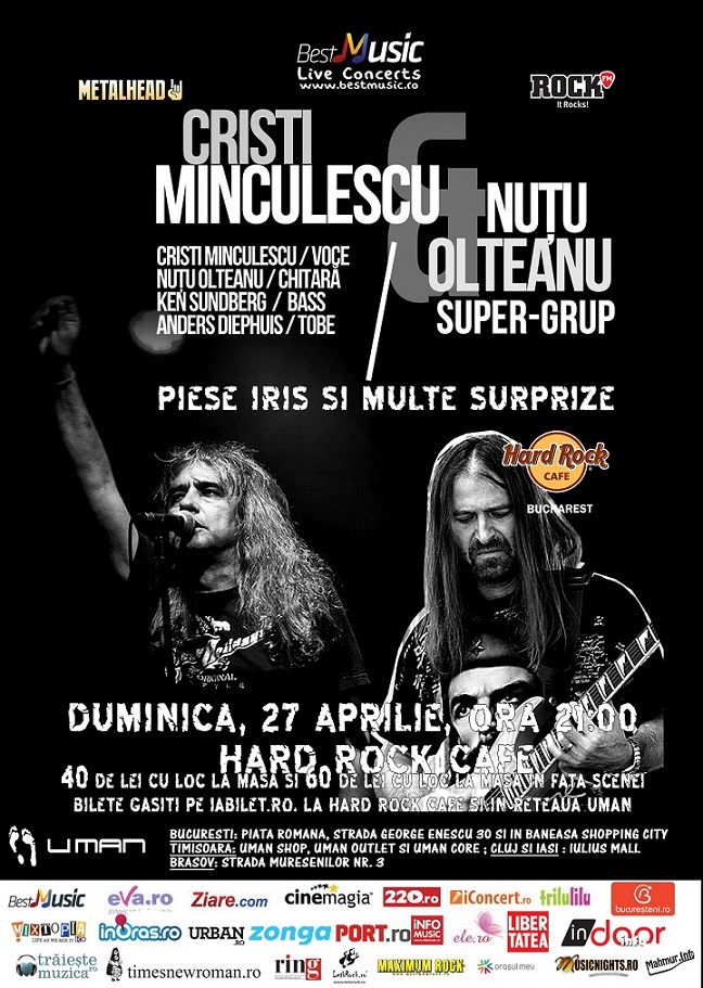 BestMusic si METALHEAD te invita la Hard Rock Cafe, duminica, 27 aprilie, incepand cu ora 21:00, la un concert cu Super-Grupul format din Cristi Minculescu, Nutu Olteanu (chitara) si doi artisti de renume international, Ken Sundberg – bass si Anders Diephuis – tobe.
