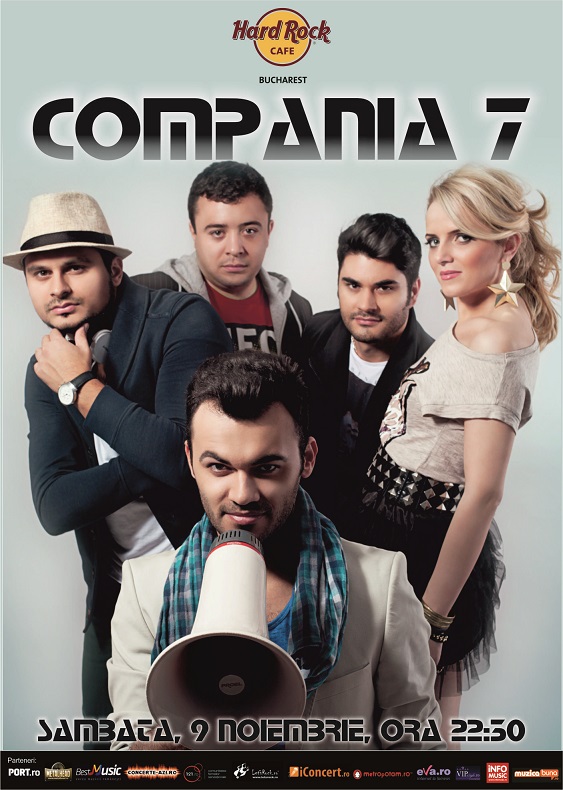 Una dintre cele mai talentate trupe romanesti de coveruri, Compania 7, va asteapta pe 9 noiembrie, de la ora 22.30, la Hard Rock Cafe cu un show inedit, in care veti asculta piese romanesti si internationale, dintr-o gama variata de stiluri.