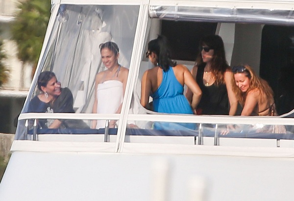 Ţinându-şi părul strâns în coc, Jennifer Lopez a fost văzută bucurându-se de un prânz uşor la o masă de pe iaht şi stând de vorbă cu prieteni.