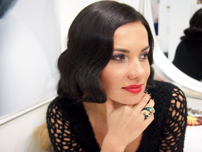 “A fost pentru prima dată când am ales aceest tip de coafură. În mod normal, prefer să îmi las părul cât mai lejer, cât mai simplu, fără a-l încărca prea mult. Sunt, însă, ocazii când este nevoie de o atenție deosebită asupra stilului coafurii, cum a fost cazul evenimentului la care am participat. Am ales o coafură în valuri, așa cum se purta în anii ’20. M-a avantajat faptul că am părul lung și a putut fi prins în agrafe la bază. Pentru acest tip de coafură, am ales un ruj de culoare aprinsă și un machiaj adecvat perioadei respective”