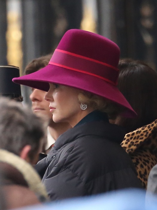 Nicole Kidman, în vârstă de 44 de ani, poate fi văzută purtând o pălărie într-o culoare aprinsă şi cu un costum extrem de elegant, întruchipând-o pe prinţesa Grace Kelly într-o scenă filmată în faţa unui magazin de bijuterii Cartier.