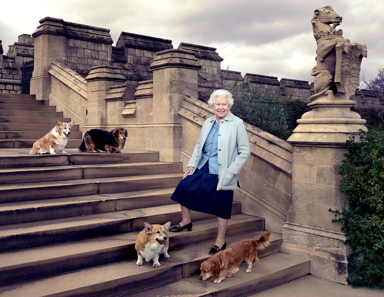 În afara fotografiei alături de cei şapte copii, miercuri au mai fost făcute publice alte două fotografii menite să celebreze împlinirea pe 21 aprilie a 90 de ani de viaţă. Într-una dintre imagini Regina Elisabeta apare alături de cei patru câini ai săi din rasa corgi: Willow, Vulcan, Candy şi Holly.