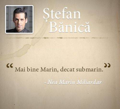 "Mai bine Marin, decât submarin", este citatul din celebrul film românesc "Nea Mărin miliardar" pe care Bănică Junior l-a împărtășit fanilor. Cum era de aşteptat, aceştia au interpretat textul ca o aluzie la Andreea Marin şi chiar au comentat în acest sens.