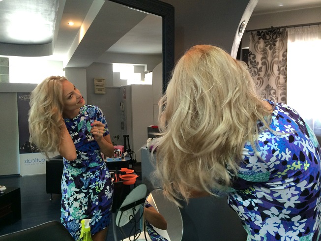 "Ma vopsesc rar, de doua ori pe an, insa merg la Noblezza de fiecare data cand trebuie sa imi coafez parul si ma pregatesc de un eveniment. La fel si pentru tratamente faciale si corporale. Sunt blonda de cand ma stiu si nu mi-am propus niciodata sa fac vreo schimbare radicala. Nu m-as tunde scurt si nici nu m-as vopsi roscata sau bruneta. Daca as fi fost actrita poate as fi spus da, insa nu este cazul... Bejul, in schimb, mi se potriveste de minune"