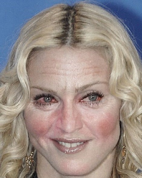 Ochii roșii, obraji roșii și multe riduri: Madonna arată cu 10 ani mai în vârstă după ce imaginea ei a fost prelucrată de aplicația Drinking Machine.