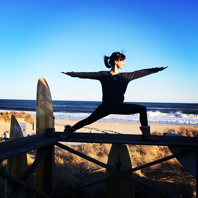 Îmbrăcată casual, cu egări, o bluză azur trasă peste un maieu și botine cu toc înalt, bruneta în vârstă de 30 de ani nu s-a sfiit să încerce mai multe mișcări și poziții de Yoga, dovedindu-și agilitatea.