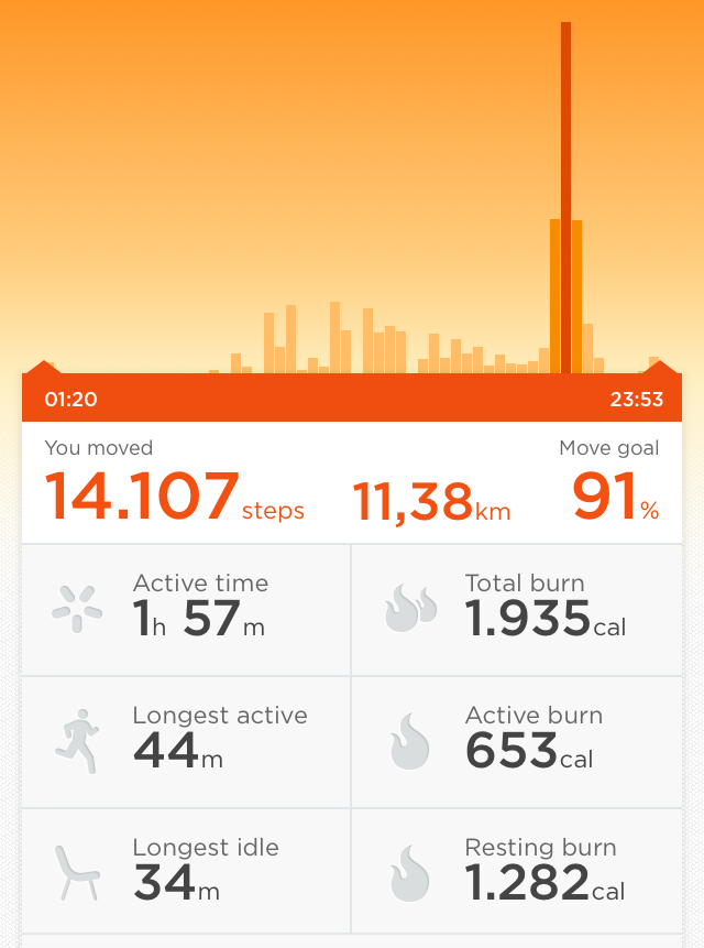 În total am ajuns la 2000 de calorii arse într-o zi. Aveţi ataşată o fotografie care demonstrează acest lucru. Am avut cu mine un gadget care mi-a monitorizat întreaga activitate. Din acest număr au fost scăzute caloriile meselor aferente. Mă declar mulţumită şi împlinită pentru că am reuşit să fac posibil acest lucru fără a depune un efort ieşit din comun.