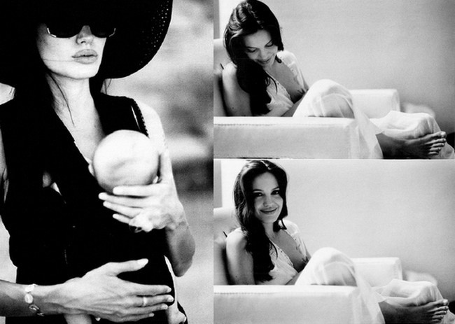 Fotografiile care au fost publicate într-o ediţie din 2008 a revistei W! o prezintă pe frumoasa Angelina alături de copiii săi, dar şi în ipostaze foarte sexy. Fanii au ocazia să o admire pe Angelina când alăptează, când se joacă cu Shiloh şi Pax sau când pur şi simplu pozează sexy pentru faimosul ei iubit.