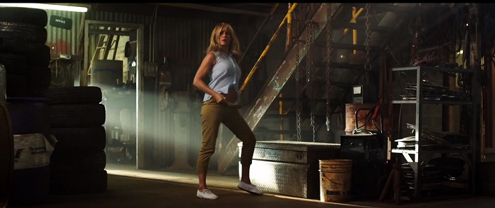 Jennifer Aniston joacă rolul falsei soții a traficantului, iar numărul ei de striptease survine după ce "familia sa" este sechestrată de un grup de interlopi mexicani.