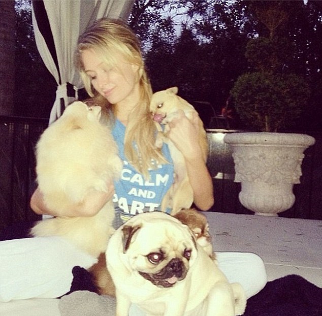 Odată ajunsă la reşedinţa ei, Paris a postat pe Instagram o poză în care apare alături de căţeluşii săi.