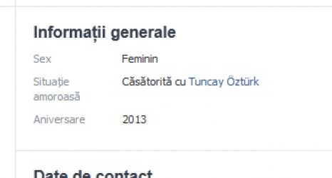 Astfel, la secţiunea "Stare Civilă" stă scris acum "Căsătorită", iar în dreptul secţiunii "Despre Andreea" apare numele ei întreg, Andreea Marin Ozturk. Gestul prezentatoarei TVR arată că se mândreşte cu soţul ei şi cu dragostea ce i-o poartă acestuia, notează ziarul Click!.
