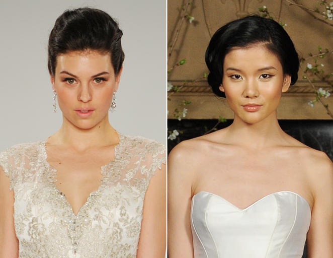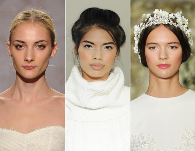 Jenny Packham, Amsale si Oscar de la Renta au demonstrat ca mai putin inseamna mai mult. Creatorii de moda au folosit o crema putin pigmentata pentru a mentine pielea hidratata, putin blush sau bronzant in obraji, o tusa de mascara si buze nude sau roz.