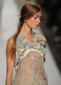 In ceea ce priveste coafura, la Demeulemeister parul a fost desfacut si cu aspect dezordonat. La Etro, parul a fost netezit si apoi tapat sub forma de bucle mari. Kenzo a prezentat, de asemenea, un amestec etno de haine, pus in valoare de parul coafat cu carare pe mijloc, ondulat, lung si desfacut, aranjat intr-un stil care ar arata chiar ca pe marginea piscinei dintr-o statiune din Aman sau ca un excursionist care urca pe Kilimanjaro.