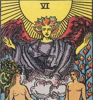 Îndrăgostiţii simbolizează iubirea, pasiunea, afecţiunea, dar şi indecizia, nehotărârea, alegerile dificile, infidelitatea. Posibil soţ/soţie şi amant sau două căsnicii.