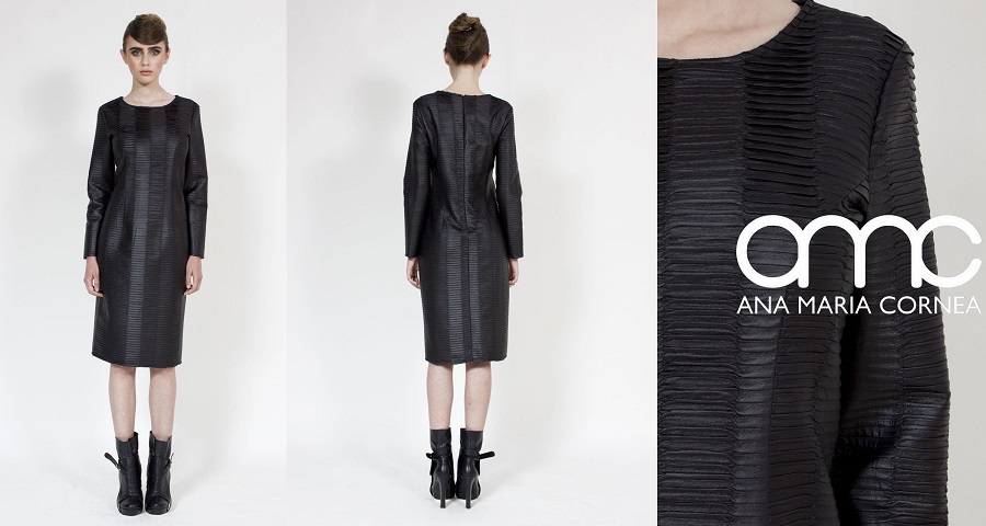 Ana Maria Cornea, designer care reuseste sa aduca un plus de eleganta si stil oricarei tinute, a selectat un look office potrivit pentru trendurile acestui an. Casual office se transforma acum in glamour office, iar simplitatea este cuvantul care defineste aceasta tinuta. Materialele precum pielea zimtata si stofa sunt in topul preferintelor, iar rochiile clasice au parte de un upgrade: taieturile geometrice. Un exemplu bun pentru acest trend este rochia Alegria, care poate fi purtata cu o pereche de pantofi nude si accesorizata cu o pereche simpla de cercei.