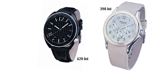 Police - un design avangardist. Un mix intre indraznet si melancolic. Piele, incrustatii si metal. Asa se traduc ceasurile care cunosc adevarata valoare timpului. Le gasesti la ele acasa. In magazinele Police Shop din Bucuresti ( Galeriile Feeria, Unirea Shopping Center), Cluj ( Polus Mall), dar si la magazinul Lazzaro din Bucuresti, la Plaza Romania,Famous Brands, la City Mall, la Iasi (Complexul Felicia), Bacau, Tg Mures (magazinele GMT Greenwatch), Timisoara ( Iulius Mall – Mag Edifice) si in Oradea ( Iulius Mall – Mag Edifice).