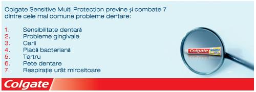 Noul Colgate Sensitive Multi Protection este aliatul tau impotriva a 7 probleme dentare extrem de importante: