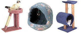 Imaginile prezentate aici, ale unor... piese de mobilier destinatetandrelor feline, sunt numai o sursa de inspiratie pentru lucrurile pecare le poti crea pentru distractia si confortul pisicii tale.Cumpara un cos de rachita. El va deveni locul de somn si joaca alpisicii. Vei vedea ca ea adora sa isi ascuta gherutele in acestmaterial si ca se va simti in el foarte confortabil si la adapost detoate zgomotele sau miscarile neasteptate din casa. Daca vrei, il potiacoperi cu o bucata de stofa. Neaparat sa adaugi o jucarie suspendata.Ia un tub (de carton, lemn sau o cutie de conserva) cu un diametrusuficient de mare incat pisica sa poata trece prin el, inveleste-l intr-obucata de mocheta si fixeaza-l pe un suport de lemn.