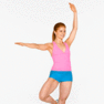 Stai in picioare, cu o mana intinsa in spate si alta deasupra capului.