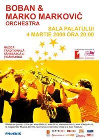 Participanti la coloana sonora a unor filme ca "Underground" sau "Arizona Dream", Boban Markovic si Orchestra vor aduce muzica sarbeasca pe scena Salii Palatului, incepand cu ora 20.00.