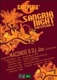 Vineri seara petreci la Cafepedia, alaturi de Macondo si DJ Joe. Trupa Macondo este 100% sud-americana, formata din: Luis Angel Palomino (Cuba) sax & flute, Raubel Torres (Cuba) bass, Gustavo Alcantara-Ramirez (Peru) piano, Gilberto Ortega (Cuba) timbales & drums, Ati de Chile (Chile) congas & bongos, Fabian Sanchez (Columbia) solist vocal.