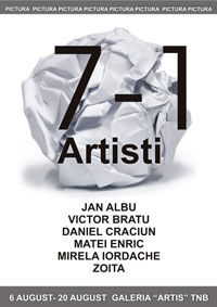 La Galeria "Artis" TNB are loc joi, 7 august, ora 18.00, vernisajul expozitiei de grup "7-1". Tot joi incepe la Vama Veche Festivalul Folk You, ajuns la a patra editie.Un proiect, sase artisti: "7-1"