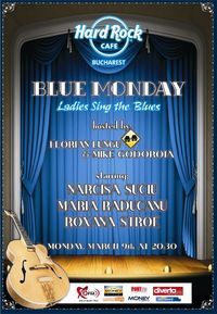 Luni seara, 9 martie, la Hard Rock Cafe se vor intalni, pentru prima oara pe aceeasi scena, trei artiste din sfera muzicii pop, blues si jazz. Narcisa Suciu (interpreta de muzica pop), Roxana Stroe (chitarista de blues) si Maria Raducanu (interpreta de jazz modern) vor sustine un concert intr-o formula inedita.Cea de-a treia editie "Blue Monday" va aduce in fata publicului un repertoriu bogat, cu piese semnate: Nina Simone, Eric Clapton, Janis Joplin, BB King, Bonnie Raitt si Bob Dylan. Gazdele evenimentului vor fi, ca de fiecare data, muzicologul Florian Lungu si interpretul de muzica blues, Mike Godoroja.