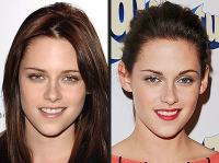 Kristin Stewart, actrita care a facut valva cu rolul din "Twilight", ni se infatiseaza la randu-i, in doua ipostaze complet diferite din punct de vedere al look-ului, insa pastreaza acelasi zambet sugubat. In prima alege o imagine care sa i se potriveasca Bellei, personajul pe care il interpreteaza in pelicula mai sus amintita, renuntand aproape de tot la machiaj. Insa, atunci cand "uita" de personajul sau, Kristin adora sa-si puna in evidenta buzele cu ruj corai.