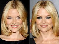 sunt machiate in ambele poze mai toate personajele. parerea mea este ca Emily Deschanel si Jaime King sunt uratele la figura si machiate si ne... iar ca altele-s mai frumoase nemachiate